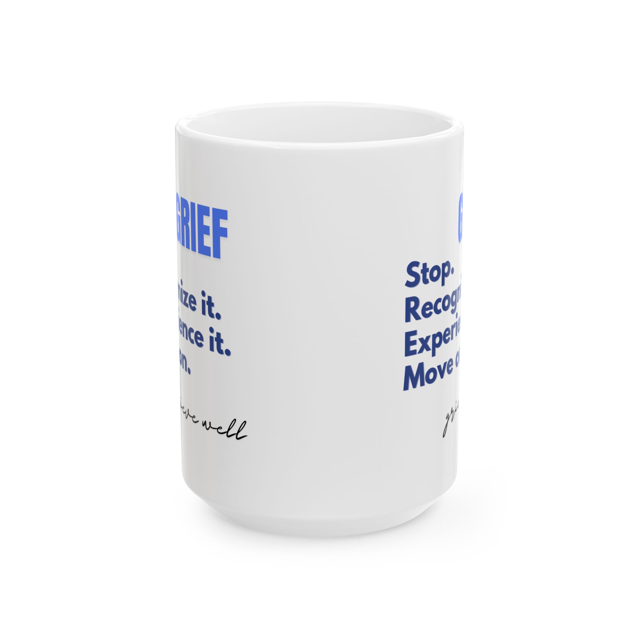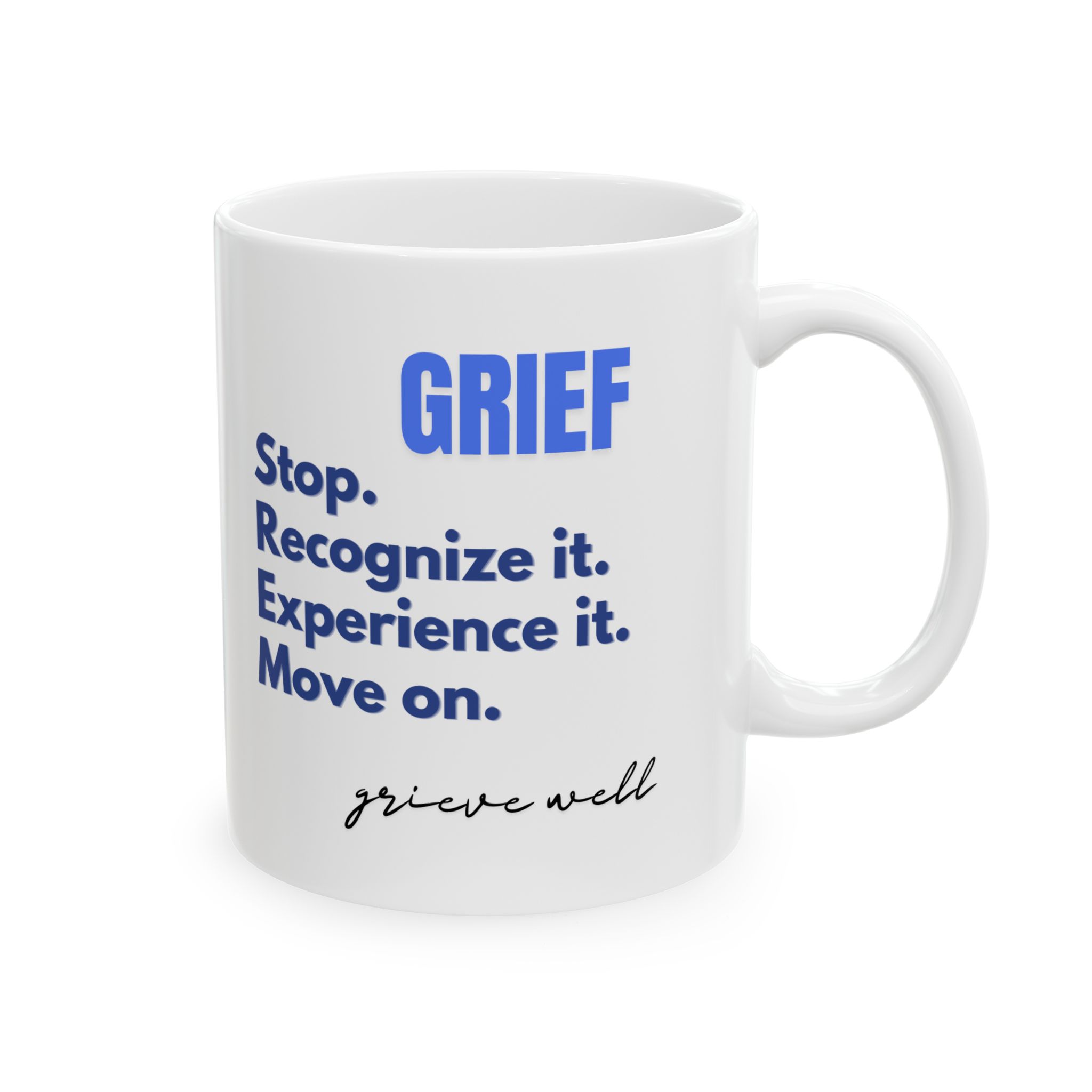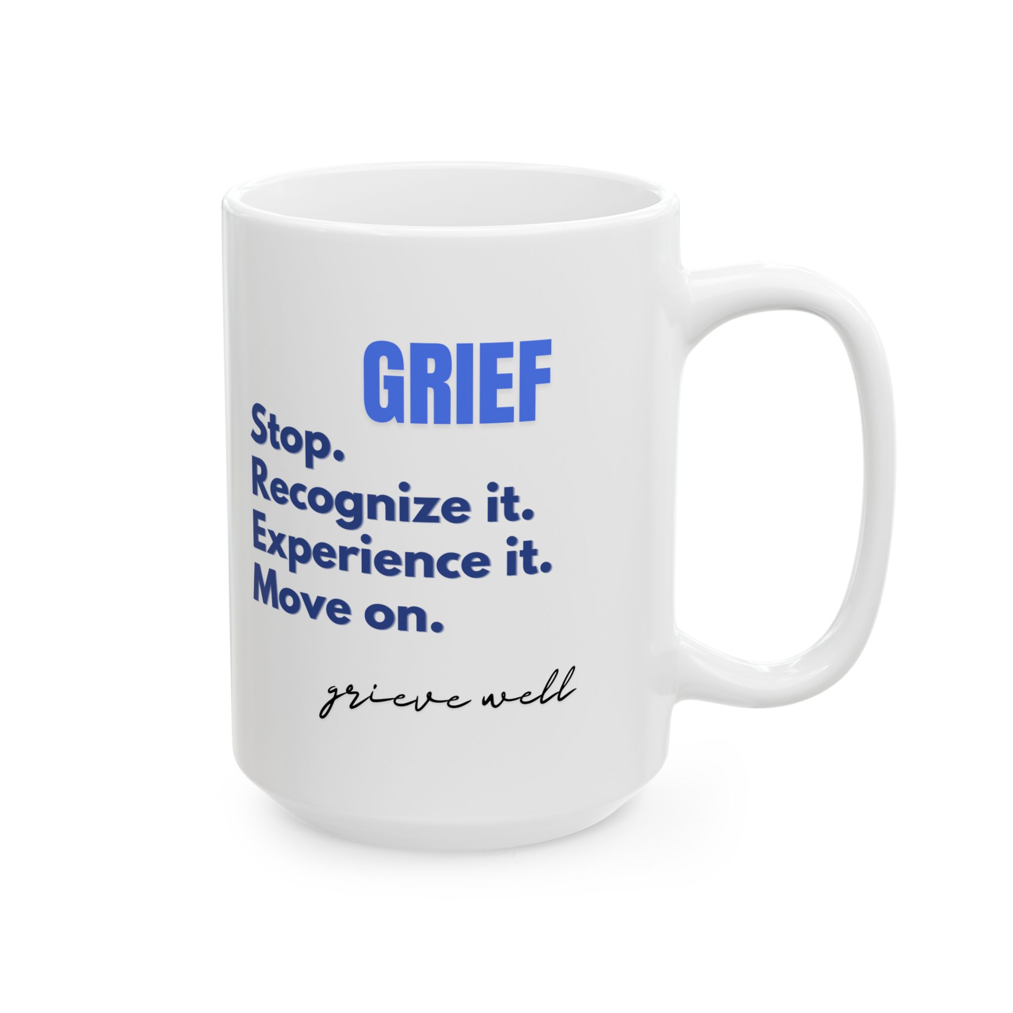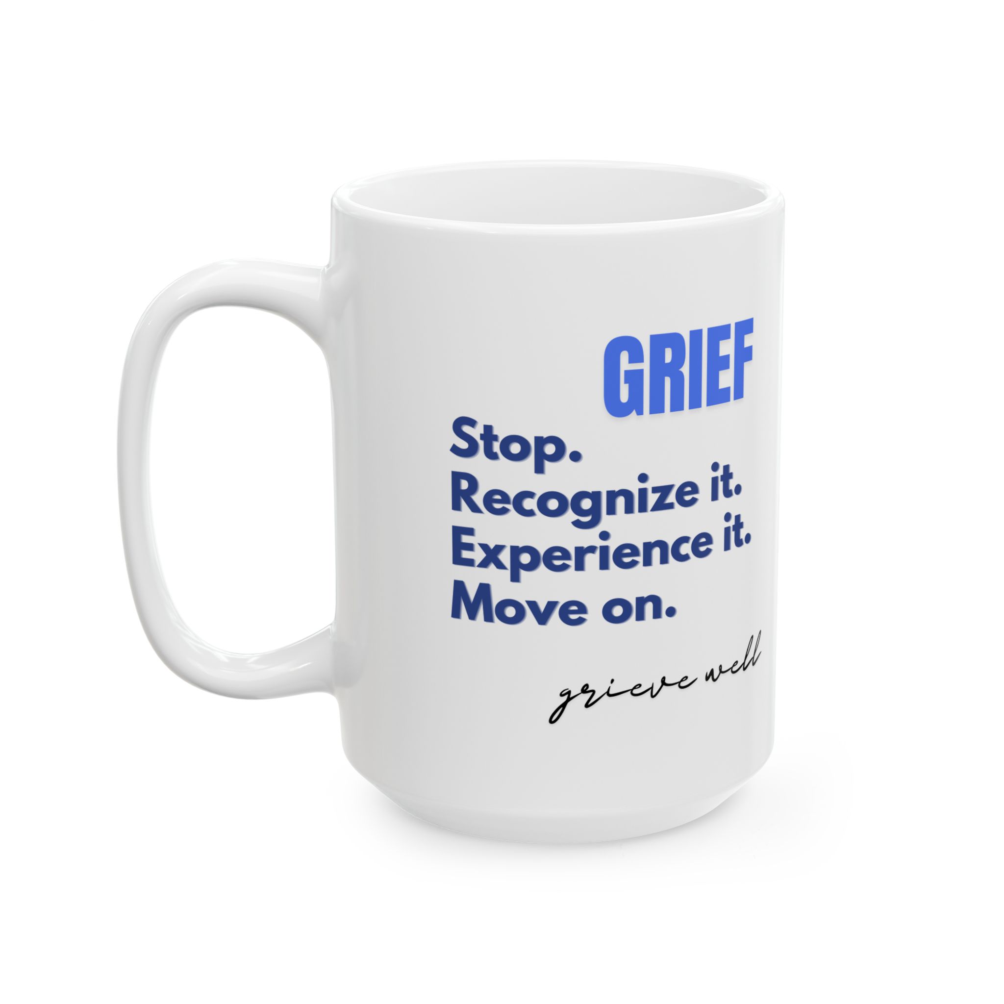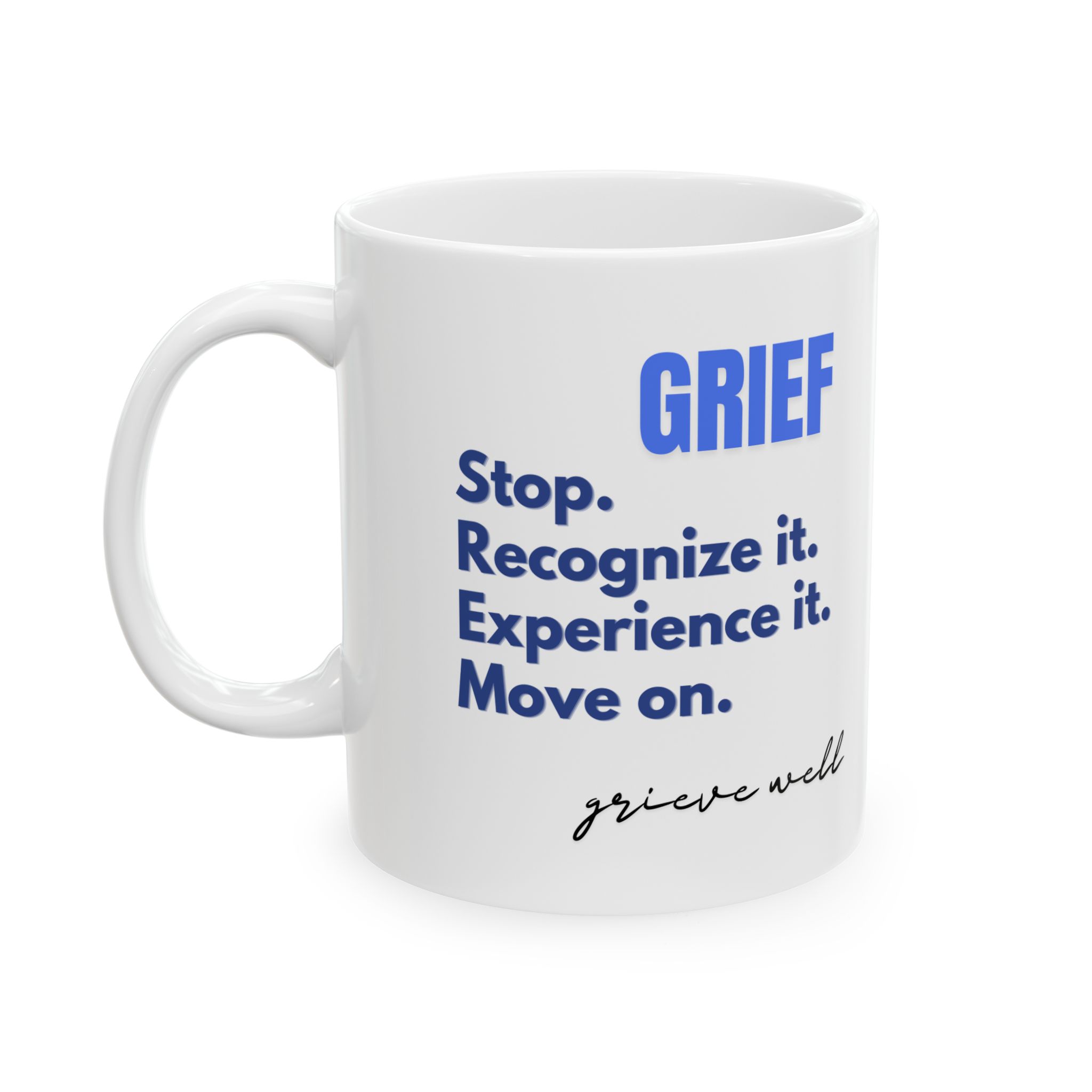 “Grief Stop. Recognize it. Experience it. Move on. Grieve well.”